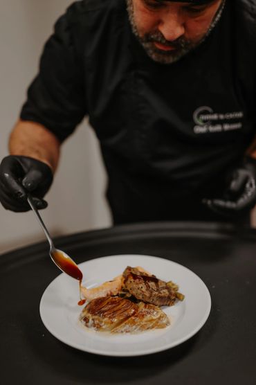 Our motto is we cater, "anything, anytime, anywhere." Warehouse, no problem. Barn, backyard, office, home, upscale event venue, we've got you covered.